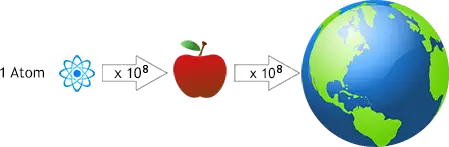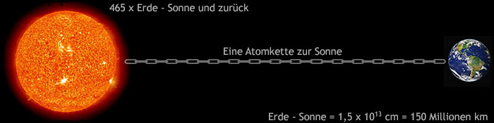 Atome unterscheiden sich in ihrer Größe und Masse, die beide unvorstellbar klein sind. Der Durchmesser eines Atoms bertägt nur wenige Nanometer (nm). 1 nm = 10-9 m = 0,000 000 001 m. Entsprechend gering ist die Masse eines Atoms. Beispielsweise hat ein Wasserstoffatom die Masse