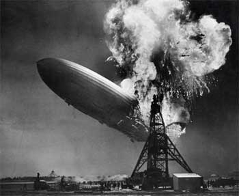 Im hinteren Teil des Luftschiffes bildete sich ein brennbares Wasserstoff-Luft-Gemisch, das sich möglicherweis durch einen elektrischen Funken entzündete. Qelle: Wikipedia, Bild lizenzfrei
