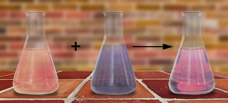 So kann eine Säure mit einer geeigneten Menge einer Base und eine Base mit einer geeigneten Menge einer Säure neutralisiert werden. Die Änderung der Farbe des Indikators zeigt dies an.