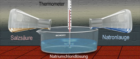 Der Versuch 2 zeigt, dass die Neutralisation ein exothermer Vorgang ist. Die entstehende Wärme bei dieser Reaktion nennt man Neutralisationswärme.