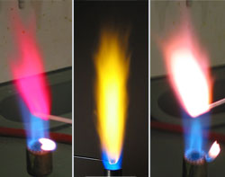 Alkalimetalle und ihre Salze verursachen eine charakteristische Flammenfärbung. Diese Erscheinung kann zum Nachweis dieser Metalle bei chemischen Untersuchungen genutzt werden.