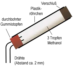 In einem bestimmten Mischungsverhältnis mit Luft sind alle Dämpfe von brennbaren Flüssigkeiten explosiv (Versuch 3). Dieser Explosionsbereich kann sehr ausgedehnt sein (Tabelle 2). Auch brennbare Gase können mit Luft innerhalb eines bestimmten Explosionsbereichs explosive Gemische bilden (Abb. 13.2). Mit der Knallgasprobe kann man überprüfen, ob sich ein Gas nicht mehr innerhalb des Exposionsbereichs befindet.