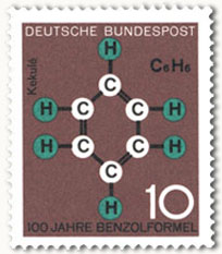Um die korrekte Strukturformel des Benzols schwelte ein langer Gelehrtenstreit. Aus der Summenformel C6H6 konnte lange Zeit keine Struktur abgeleitet werden, die mit den beobachteten Eigenschaften in Einklang zu bringen war. Zur Summenformel C6H6 lassen sich theoretisch 217 verschiedene Strukturformeln aufstellen. Erst im Jahre 1861 formulierte der österreichische Chemiker Johann Josef Loschmidt einige mögliche Strukturformeln des Benzols, die der deutsche Chemiker August Kekulé (1829- 1896) dann 1865 übernahm. Einer Legende nach kam Kekulé dieser Einfall im Traum. Nach Kekule wandern die Doppelbindungen im Molekül schnell hin und her. Sie sind an keinen festen Platz gebunden und unterscheiden sich dadurch von den Doppelbindungen der Alkene. Er schlug für das Benzolmolekül eine Ringstruktur vor.