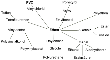 Die teuere Herstellung von Ethin aus Calciumcarbid veranlaßte jedoch die Forschung, einen neuen Weg einzuschlagen: Einmal suchte man nach Katalysatoren, die auch beim Ethen wichtige Reaktionen ermöglichten, zum anderen versuchte man günstigere Herstellungsverfahren des Ethins auf Basis der Erdgas- und Petrochemie zu entwickeln.