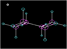 Cyclohexan ist ein Beispiel für einen ringförmigen Kohlenwasserstoff. Am Modell ist die Tetraederstruktur zu erkennen. Wie die Animation zeigt, liegen die Kohlenstoffatome nicht in einer Ebene, wie das etwa das Formelbild daneben vortäuschen mag.